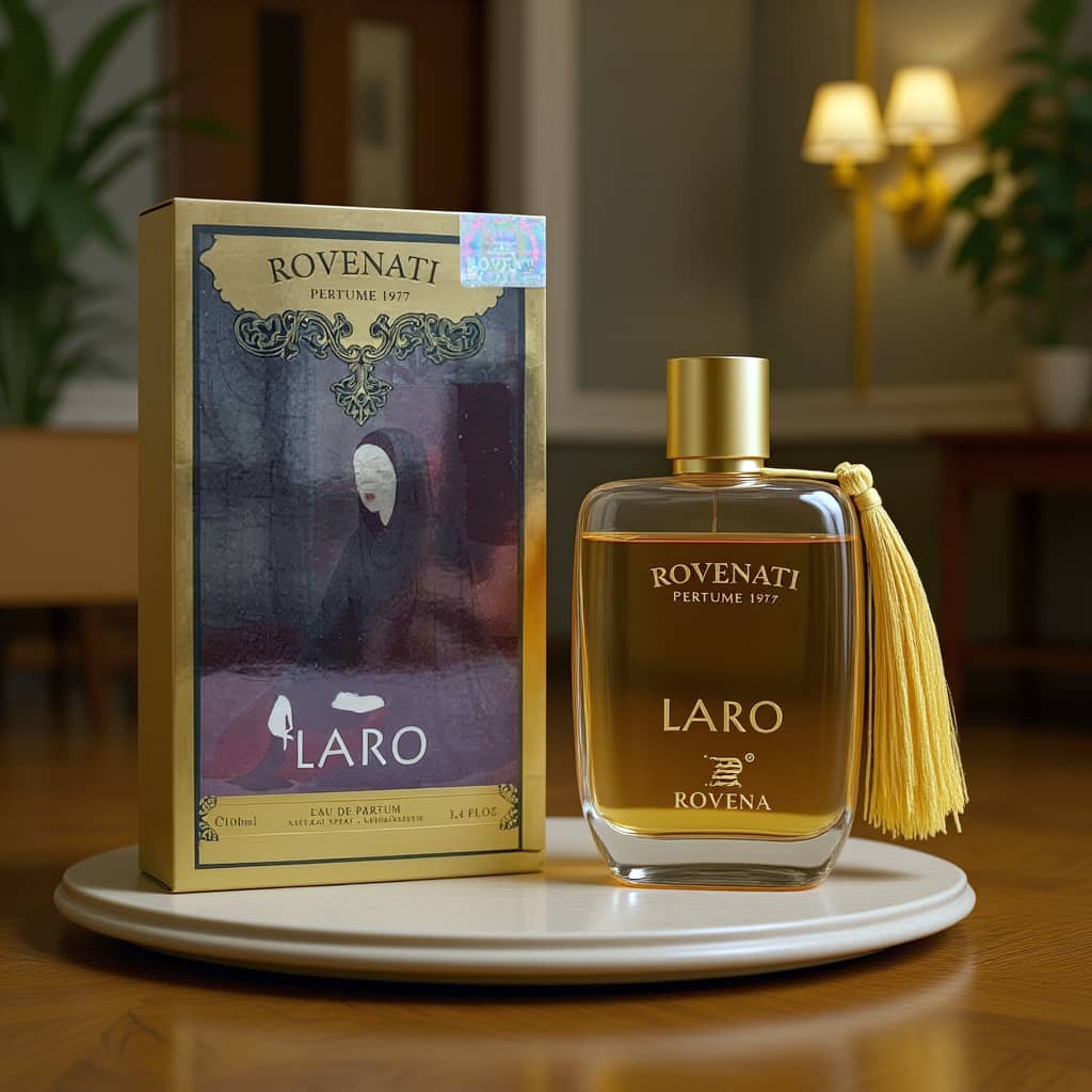 این عطر زنانه گرم و شیرین با حجم ۱۰۰ میلی‌لیتر، یک رایحه شرقی گلی، وانیلی و کاراملی دارد. ادکلن رووناتی لارو با طبع گرم و رایحه شیرین، عطری است که در ابتدا با شیرینی دلچسب و خوشمزه وانیل کار خود را آغاز کرده و کم کم ماندگاری بیشتری به خود می‌گیرد.
