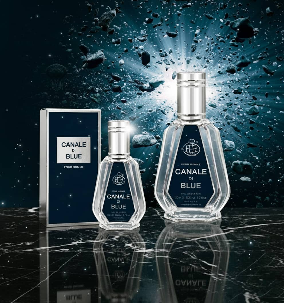 ادکلن 50 میل فراگرنس ورد مدل کانال دی بلو (Fragrance World Canal De Blue)، یک ادو پرفیوم با کیفیت و یکی از بهترین عطرهای مردانه از برند شناخته شده فراگرنس ورد است که رایحه‌ای بسیار مشابه با عطر پرفروش و محبوب بلو د شنل (Bleu de Chanel) دارد.